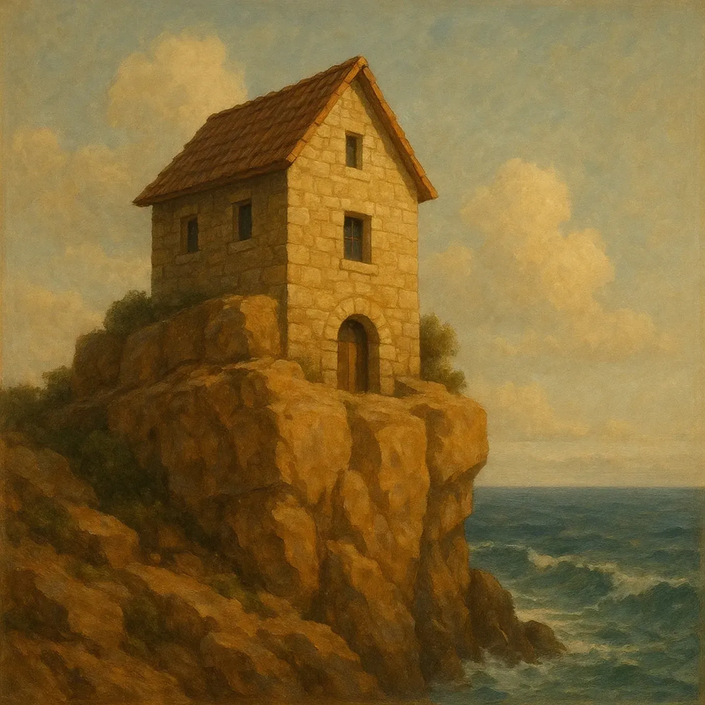 "Therefore everyone who hears these words of mine and puts them into practice is like a wise man who built his house on the rock. The rain came down, the streams rose, and the winds blew and beat against that house; yet it did not fall, because it had its foundation on the rock. But everyone who hears these words of mine and does not put them into practice is like a foolish man who built his house on sand. The rain came down, the streams rose, and the winds blew and beat against that house, and it fell with a great crash."